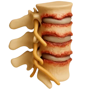 Основними симптомами є біль у спині чи шиї, який посилюється після фізичного навантаження, тривалого сидіння або різких рухів. Часто відчувається скутість і зниження рухливості ураженої ділянки хребта, особливо вранці. Можуть з’являтися головний біль, запаморочення, шум у вухах (при шийному остеохондрозі) або біль, що віддає у кінцівки (при поперековому). Нерідко виникає поколювання, оніміння, відчуття “мурашок” у руках чи ногах через здавлення нервів. У тяжчих випадках — порушення постави, зниження сили м’язів, обмеження функцій кінцівок. Симптоми прогресують поступово, тому важлива рання діагностика та лікування.